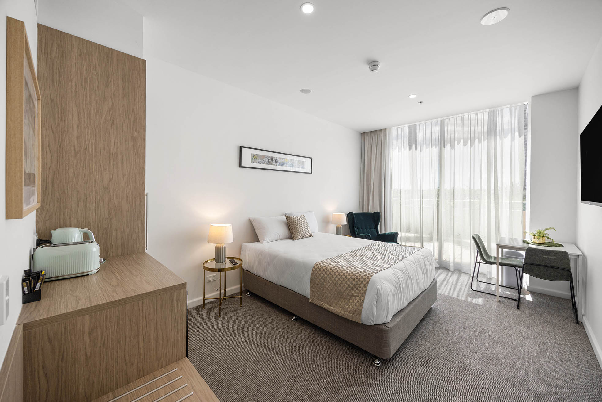 Studio – Queen rooms are ideal for short holiday breaks or quick business trips.