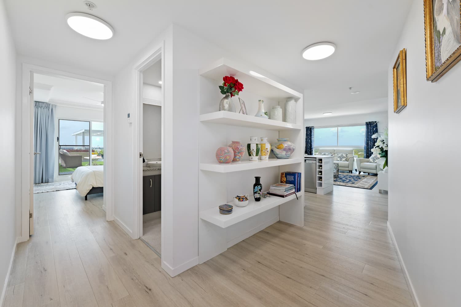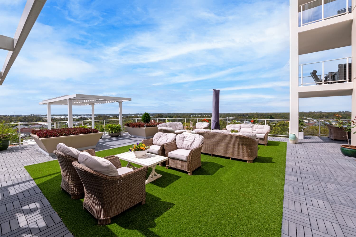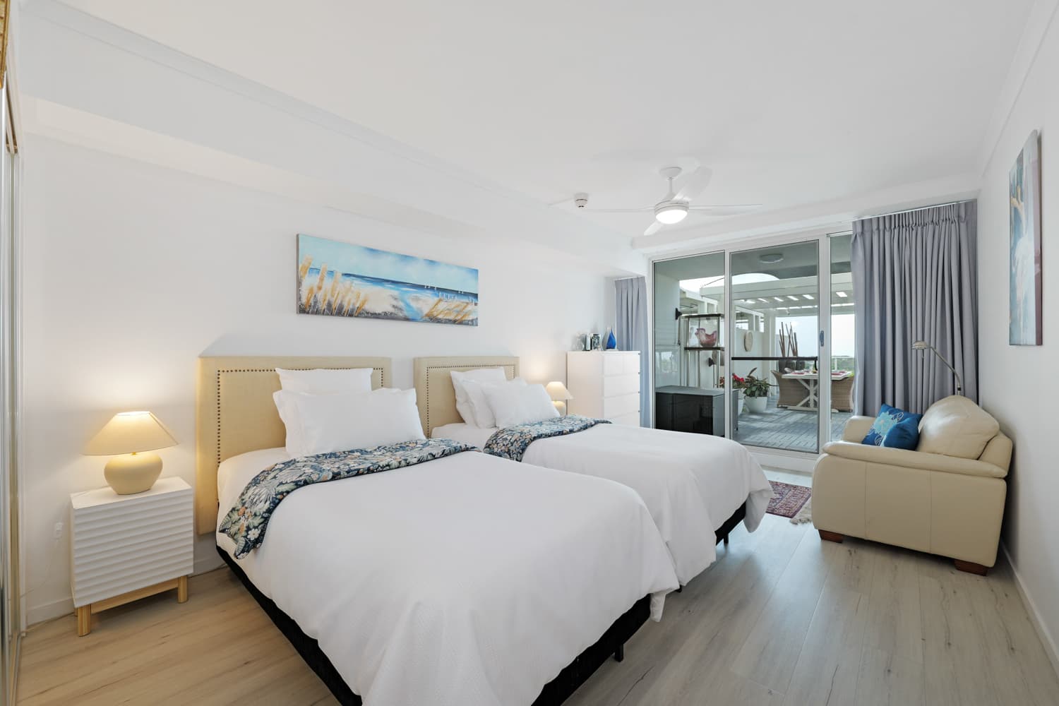 Our three-bedroom sub-penthouse is located on Level 8 providing views to the Glasshouse Mountains, over Pelican Waters, and with glimpses of the ocean. The apartment is fully self-contained with an open-plan living and dining space and full kitchen, as well as three separate bedrooms (2 queens, 3 singles), two bathrooms, laundry facilities, and an exceptional outdoor area perfect for indulgence.